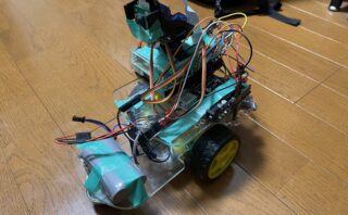 過去に製作したArudinoラジコンカーをベース(ご参考)に2モータ差動駆動(両輪が独立して回る方式)で動くようにしました。まだ時々暴走する不安定さもありますが、くるくるとその場で回転するピボット動作は、よりロボット感を感じます。見た目はこ...